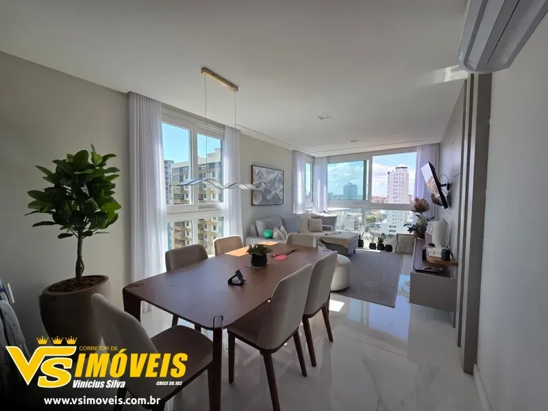 Excelente apartamento finamente decorado e mobiliado, acabamentos em alto padrão, 100% rebaixado em gesso, piso porcelanato, esquadrias externas em PVC, esquadrias internas de fábrica, piso dos banheiros com aquecimento, sistema de som nos ambientes, possui 2 dormitórios, ambos suítes, living ambientes, banheiro social, churrasqueira, cozinha, lavanderia, 2 vagas para veículo. O prédio conta com ampla área de lazer com fitness, piscinas, brinquedoteca, área aberta para churrasco com fire place, bicicletas compartilhadas do edifício com mini oficina, cadeiras e carrinhos de praia compartilhadas, escada com demarcação, espaço chimarrão e muito mais.